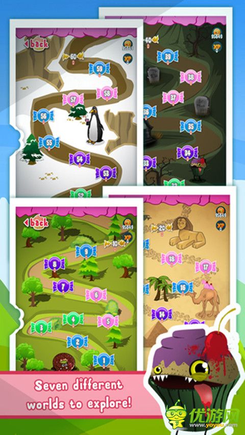 粘粘小怪物已急切想要糖果吃,唯一的方法是要得到你的幫助才能獲得那些糖果。幫助它爬到充滿美味的高塔上獲得各種糕點(diǎn)和甜食。多種美食和游戲模式,7種不同的世界等你去探索。