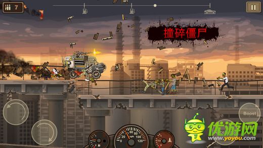 駕駛你的小車穿過重重僵尸的阻攔,在這末日的世界中挑戰(zhàn) 《Earn to Die-戰(zhàn)車撞僵尸2》的最高分?jǐn)?shù)!在國土的另一端,有一艘航船正等待撤離。你的前方只有一個(gè)阻礙:被僵尸占據(jù)的無數(shù)城市。情況是不是很熟悉?只有一輛破舊的汽車和幾張現(xiàn)鈔,而你卻需要沖過成群結(jié)隊(duì)的僵尸并逃出生天!