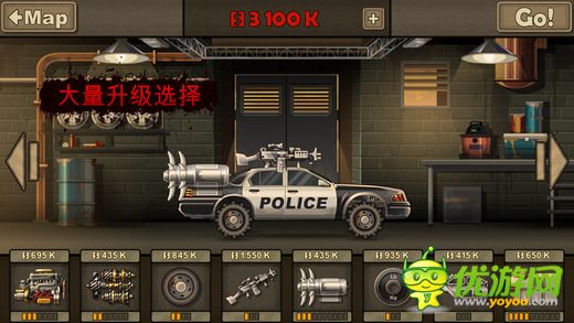 為僵尸打造一部殺戮機(jī)器:解鎖并升級(jí) 10 種不同的車輛,包括跑車、消防車,甚至是冰淇淋販?zhǔn)圮?。每種車輛都可以裝備各種升級(jí)項(xiàng)目,比如裝甲外框、車頂機(jī)槍、增壓器等等。不要給僵尸們?nèi)魏螜C(jī)會(huì)。