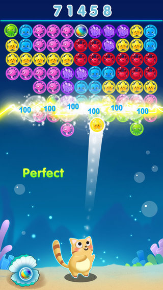 點(diǎn)擊屏幕發(fā)射泡泡,通過(guò)3個(gè)或3個(gè)以上相同顏色的泡泡進(jìn)行消除。