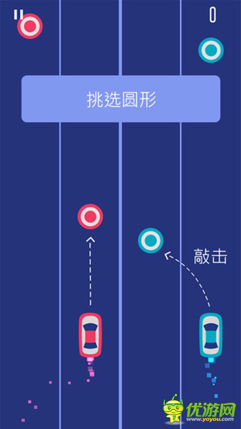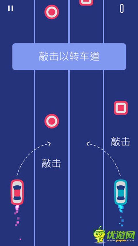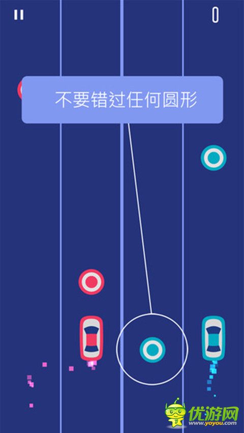 同時控制紅色和藍(lán)色汽車。 一路上收集所有圓圈和躲避方塊兒。只有兩只手哦怎么同時控制好兩輛車呢!