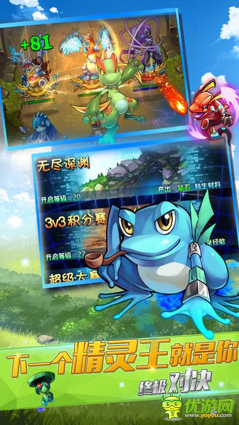 小智:我是要成為精靈王的男人!十萬伏特點(diǎn)擊準(zhǔn)備,去吧,我的皮神!現(xiàn)在下載即刻奉上強(qiáng)力皮神和五星精靈蛋。上百種精靈任意搭配,酷炫戰(zhàn)場(chǎng)隨你Pk,無盡深淵等你來戰(zhàn)!