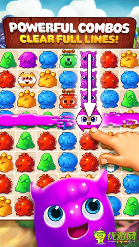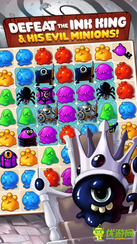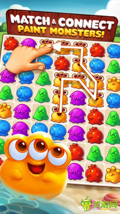 《畫(huà)怪物》是一款連線(xiàn)消除闖關(guān)游戲,將同樣的顏色連一起消除后得分闖關(guān),隨機(jī)出現(xiàn)的冰塊、墨水怪和墨水囚籠是你的勁敵,在規(guī)定步數(shù)內(nèi)消除它們。
