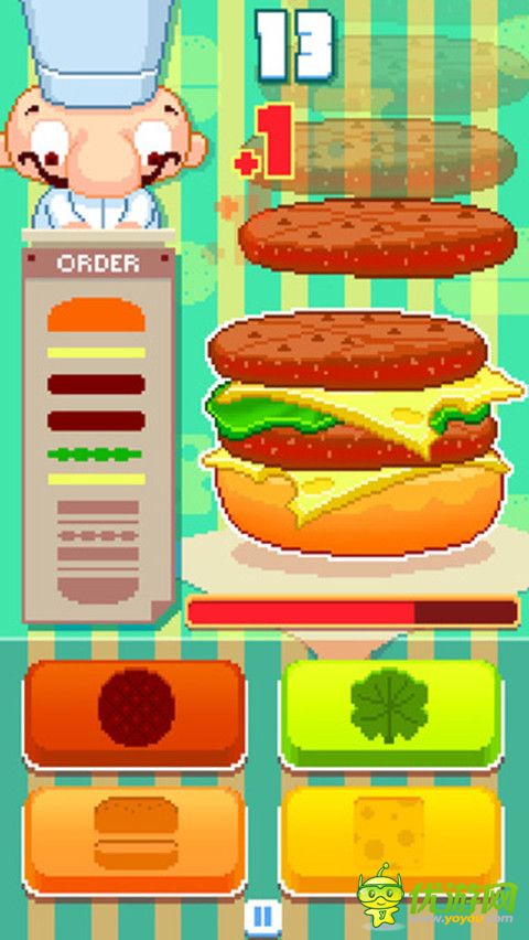 在漢堡店里為你的客人做上好吃的漢堡,你會(huì)得到一些報(bào)酬,按照正確的順序做出漢堡。