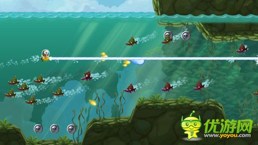 《我討厭魚-I Hate Fish》是一款簡單有趣的橫版射擊類游戲。游戲看似為像素鳥的復雜版。在這海底的世界里,偏偏主人公天生非常討厭魚,于是拿著它的自制武器上路了。玩家控制這個主人公在海底穿梭,有加速前進和上浮兩個控制按鈕。注意哦,主人公這種哺乳動物是不能在水底自由呼吸的!在氧氣耗盡之前回到水面換氣吧~