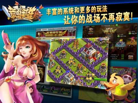 《荒島英雄》是百納游戲推出的一款SRPG手機(jī)游戲。一看到游戲的載入畫面就有種“我艸,這貨難道是仿COC游戲?”的感覺,果不其然,它確實(shí)是。熟悉的大本營設(shè)置、熟悉的金礦和藥水設(shè)定,幾乎就是給人一種這就是coc的感覺。