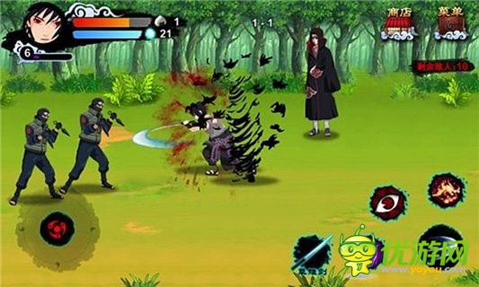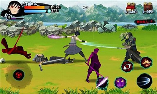 《熱血忍者2014》是一款橫版闖關(guān)動作類游戲。游戲分3大關(guān)卡,25個小關(guān),第一大關(guān)通過后解鎖第二大關(guān)。游戲戰(zhàn)斗界面左下角為操作搖桿控制主角移動,右下角為技能按鈕和攻擊鍵和武器切換,左上角顯示主角屬性。游戲共有3個技能:火遁、天照和須佐能乎,火遁是從口出吐出火球,小范圍傷害、天照全屏黑色燃燒火焰,全屏傷害,須佐能乎佐助無敵狀態(tài),攻擊力暴增。使用需要消耗一定的查克拉。通過不停的闖關(guān)升級,提升主角戰(zhàn)斗力,復(fù)仇之日指日可待。