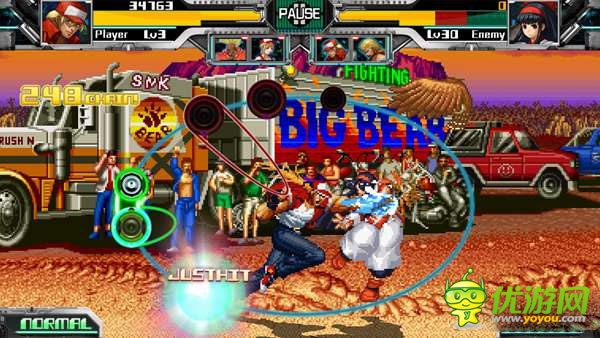 經典游戲的翻身大改版我們見得不少,先后有《鐵拳》、《街霸》紛紛變身推出卡牌戰(zhàn)斗游戲,但如果認為這就是極限的話那就大錯特錯了,因為近日同樣有一款經典的游戲要改頭換面重新問世,它就是 The King of Fighters 《拳皇》,而它翻身過后的游戲類型,不是動作游戲、不是冒險游戲、更不是卡牌游戲,而是一款節(jié)奏游戲——The Rhythm of Fighters 《拳皇節(jié)奏》!