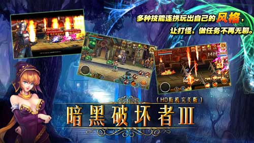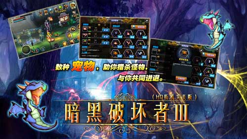 《暗黑破壞者3》是一款橫版ARPG動作類力作,以地下城副本的形式展開,以裝備賣點(diǎn)為核心,連擊系統(tǒng),轉(zhuǎn)職系統(tǒng),寵物系統(tǒng),副本系統(tǒng),隨機(jī)事件為輔助,上百個游戲音效以及超爽快的打擊感,經(jīng)典的橫版過關(guān)游戲系統(tǒng)配上全新的系統(tǒng)要素,帶給你不同的游戲體驗(yàn)!絢麗的魔法、強(qiáng)大的必殺技和多種多樣的連續(xù)技相互配合讓戰(zhàn)斗更加緊張激烈;豐富的關(guān)卡完全讓你沉浸于爽快的地下城世界中——弒龍除魔。
