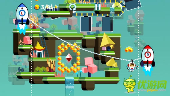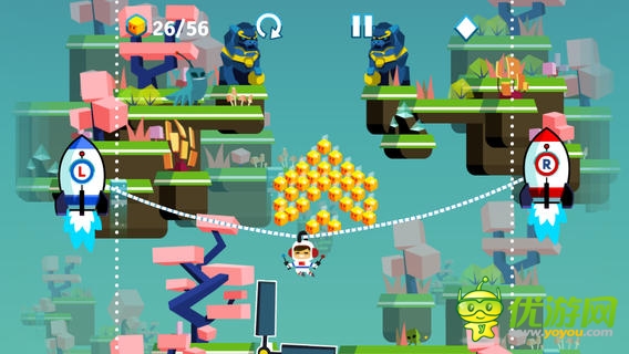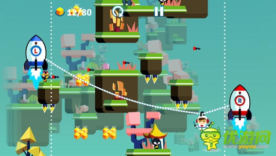 《天空旅行者:閃電之旅(Sky Tourist Blitz Trip)》是《天空旅行家(Sky Tourist)》的續(xù)作!和前作相仿,《天空旅行者:閃電之旅(Sky Tourist Blitz Trip)》續(xù)作的玩法與前作相同,玩家在屏幕兩邊控制兩個拉著一根繩子的火箭,我們的主人公就掛在這根繩子上,會隨著火箭的上下移動而左右滑動,如何精確地控制它是解除機關(guān)的關(guān)鍵,因為在逐漸向上的地圖中,陷阱和機關(guān)無處不在,不僅需要它用身體將機關(guān)給“撞開”,還要躲避各種的尖刺才可以。共有60個關(guān)卡的內(nèi)容,每個關(guān)卡各有特色。玩家如果想順利過關(guān),除了操作技巧之外還要充分利用各種道具,這些道具往往在最關(guān)鍵的時刻能發(fā)揮出出人意料的作用。這款續(xù)作相比原作在游戲場景上也做了較大的改動和創(chuàng)新,相信能給玩家?guī)硪粋€新的體驗。