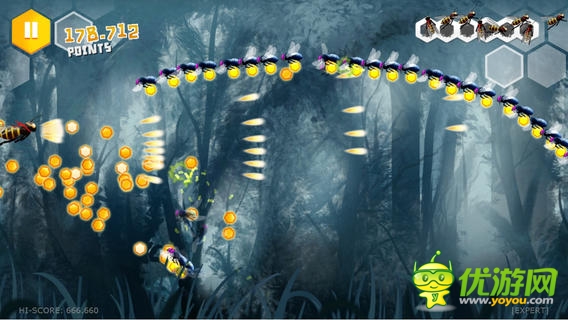 《蜜蜂戰(zhàn)士Beekyr : Eco Shoot'em up》是一款昆蟲橫版闖關(guān)游戲,蜜蜂英雄們勇闖森林、叢林、瀑布、洞穴等場景,游戲中有三個可以切換操控的人物,它們都有著各自的特性,有的擅長跳躍,有的喜歡踩踏,另一個則習(xí)慣沖刺,玩家需要結(jié)合當(dāng)前的場景切換選擇合適的角色來避開障礙,闖過關(guān)卡。