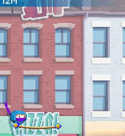 跳的過程中,會遇到一些障礙物:例如蓋樓的吊鉤,戴著竹蜻蜓飛著的其他忍者。玩家不可以讓自己的忍者碰到任何障礙物,不然就一命嗚呼!同理,要是不及時在屏幕上劃線,忍者就會以快速的下滑速度從高空中掉下,直接死掉。這種玩法就像那種拿小板在下方接住彈球的小游戲,玩法越是簡單就越難把握,如何控制好忍者的跳躍方向,讓忍者不斷向上攀是游戲的唯一難點!