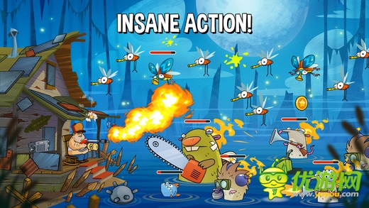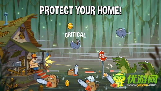 《沼澤派對(duì)_Swamp Attack》是一款防御游戲,玩家扮演的是一位住在沼澤邊的漁夫,要對(duì)付各種危險(xiǎn)動(dòng)物,你要做的就是不斷射擊,然后不斷升級(jí)裝備。
