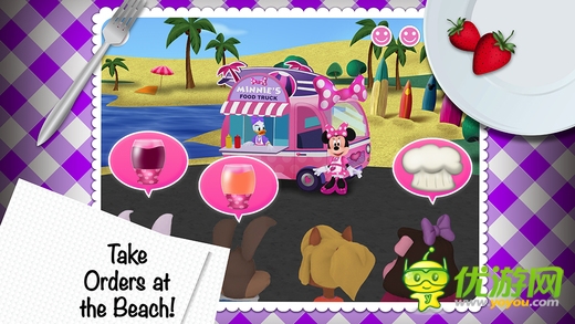 《米妮食品店_Minnie's Food Truck》是Disney新推出的一款以食品經(jīng)營模擬類的游戲,米妮快餐車食品店開張營業(yè)啦!在海灘開始你的美味之旅吧,用各種各樣食物的原料和配料烹飪成美味的食品,解鎖新的食譜,并盈利。