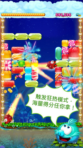 經(jīng)典的打磚塊玩法,方磚換成五彩斑斕的糖果,需控制屏幕下方的小擋板,當(dāng)彈球小毛怪向下彈落時(shí),就移動(dòng)小擋板擋住小毛怪,阻止小毛怪掉水里的同時(shí),讓小毛怪繼續(xù)往上彈,吃掉更多的糖果。