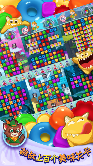 除了收集糖果外,冒險的途中還會遇到許多其它難題:例如絞盡腦汁,打開被層層包裹的彩虹糖;擊暈貪吃的小怪獸,再次連擊來將它打跑;或者觸發(fā)神秘的魔法漩渦,來產(chǎn)生更多甜甜的糖果...掉以輕心的話可是會一敗涂地哦!