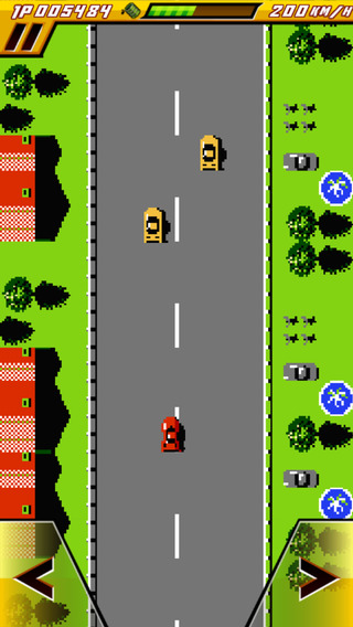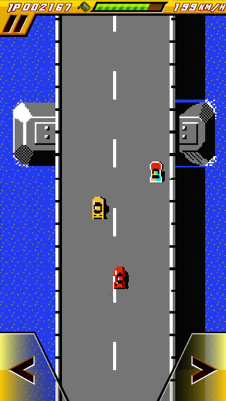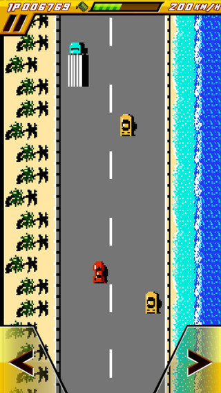 熟悉的畫面,熟悉的旋律。 一切仿佛回到童年的快樂時光。 游戲玩法:馬路英雄是一款經(jīng)典的賽車游戲,游戲分為兩個游戲難度,最高車速分別為200km/h 和 300km/h, 在固定時間內(nèi)行駛路程越遠(yuǎn)得分越高。通過左右兩個按鈕控制汽車左右,躲避其他車輛。
