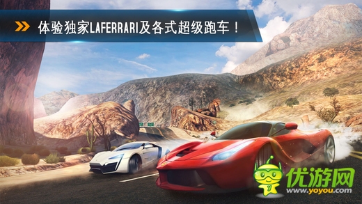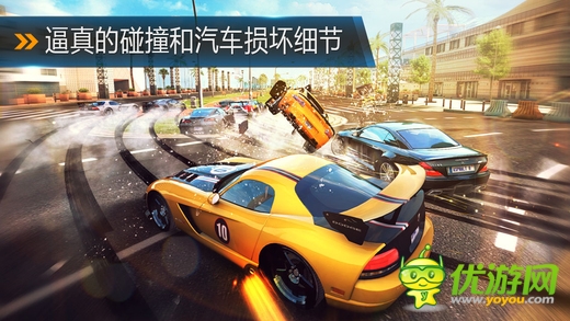 最棒的iOS娛樂賽車游戲系列來到了新轉(zhuǎn)折點!全新物理引擎打造全新 駕車體驗,屏氣凝神,感受動態(tài)高 速特技的魅力!沖上坡道,騰空飛躍豪華夢幻賽車, 演繹桶滾和狂野360°跳躍,用特技在空中完成高難度動作。 47輛高性能賽車(80%的新車?。喊↙amborghini Veneno,Bugatti Veyron,F(xiàn)errari FXX以及Pagani Zonda R在內(nèi)的 頂級授權(quán)制造商和車型 新錄制的高保真引擎聲,帶來讓人 沉醉的逼真音效。新的異國賽道:9種不同環(huán)境設(shè)定,包括威尼斯、法屬圭亞那、冰島以及內(nèi)華達州沙漠在內(nèi)的刺激賽道。 生涯模式中包含所有賽道的原型及鏡像版,還有大量隱蔽捷徑等你發(fā)現(xiàn)。為飆車狂打造的新特性:8大賽季,180場賽事盡在生涯模式,由次世代著色器,實時幾何反射及其他效果帶來的震撼視覺,感受新“傳染賽”和“門柱漂移賽”模式,細節(jié)化的損壞系統(tǒng)。