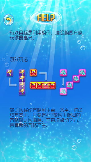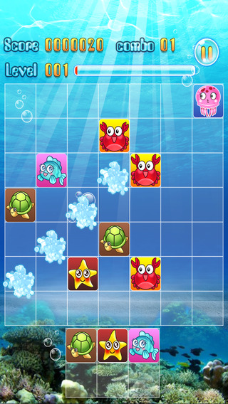 《海底7x7》是一款玩法簡單畫面可愛的的休閑益智游戲。玩家需要在7x7 =49個格子的棋盤上根據(jù)游戲規(guī)則消除系統(tǒng)生成的方塊。
