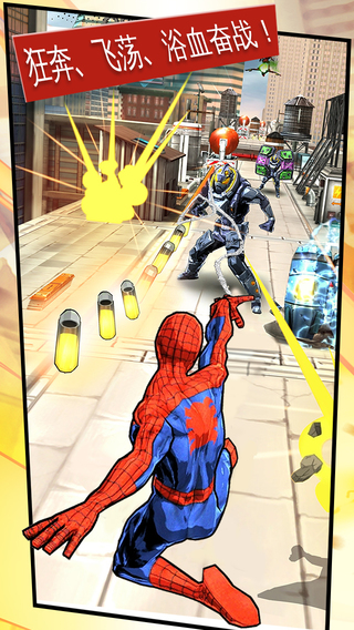 • 暢享首款蜘蛛俠蛛網(wǎng)跑酷游戲帶來的刺激!在混亂不堪的曼哈頓飛蕩、奔跑、格斗,體驗(yàn)5種不同的漫威漫畫場景!