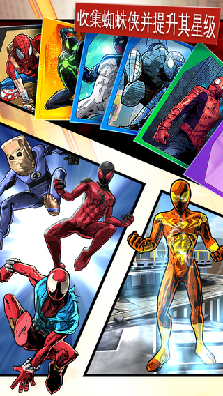 • 收集、融合并升級蜘蛛俠,每個蜘蛛俠都有其獨(dú)特的優(yōu)勢,你還可以派他們在曼哈頓執(zhí)行“蜘蛛俠行動”任務(wù)!