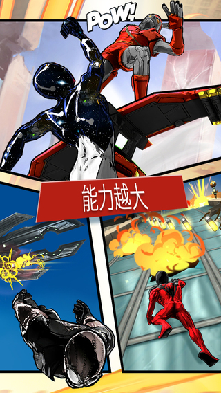 • 獨(dú)特的游戲設(shè)置,非一般的跑酷游戲!和超級反派戰(zhàn)斗,使用蛛絲飛蕩、攀爬墻壁、完成高空跳躍!