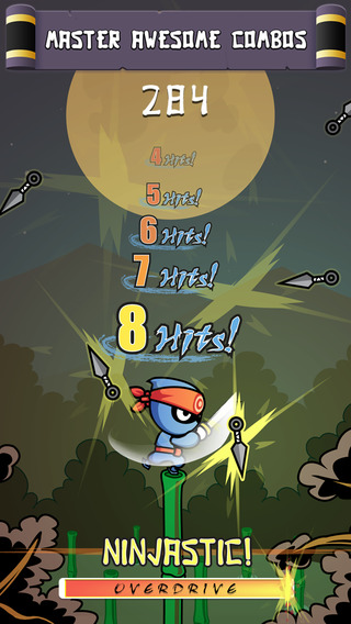 點(diǎn)擊屏幕控制忍者跳躍在空中恰好的時(shí)候把身邊的飛鏢擊飛,是一款非常有挑戰(zhàn)的游戲,需要敏捷的的反應(yīng)、 精準(zhǔn)度和時(shí)機(jī)。探索更多的特殊的技能和技巧讓你成為忍者大師。