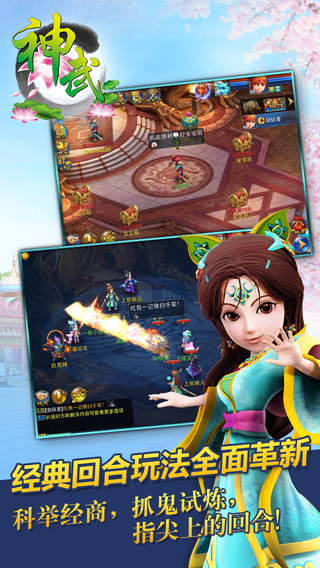 《神武》-首款快樂免費(fèi)回合制手游,真正的網(wǎng)游手游來(lái)了!《神武》玩法豐富,系統(tǒng)創(chuàng)新,畫風(fēng)清新唯美,隨時(shí)隨地游遍三界勝地!更有新穎獨(dú)特的寵物系統(tǒng)、小伙伴系統(tǒng)一定讓你愛不釋手!《神武》還是一個(gè)強(qiáng)大的娛樂互動(dòng)社區(qū),輕松的語(yǔ)音系統(tǒng)讓你邊玩邊聊,交友游戲兩不誤。隨時(shí)隨地的快樂,前所未有的游戲體驗(yàn),盡在《神武》。
