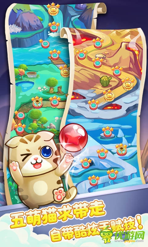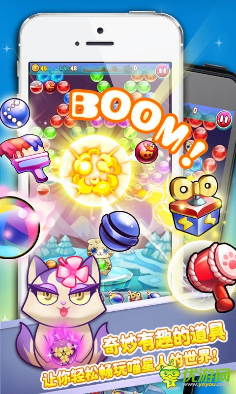 消泡泡、秀操作、耍道具、闖關(guān)卡讓你愛(ài)不釋手!滿滿的驚喜,滿滿的歡樂(lè),全系列萌萌噠泡泡貓都在等你每個(gè)體驗(yàn)一次!滿滿的能量等你一起做游戲!
