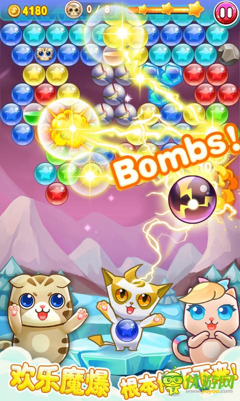 全球5000萬(wàn)玩家正在玩的、擁有百萬(wàn)用戶好評(píng)、2014泡泡龍系列巨作—《歡樂(lè)泡泡貓》重磅來(lái)襲!超豐富關(guān)卡、超新穎玩法、超有趣道具、超Q萌小貓角色、超銷(xiāo)魂背景音樂(lè)!