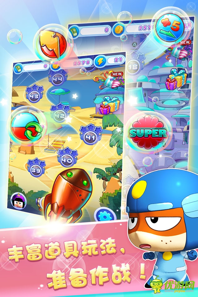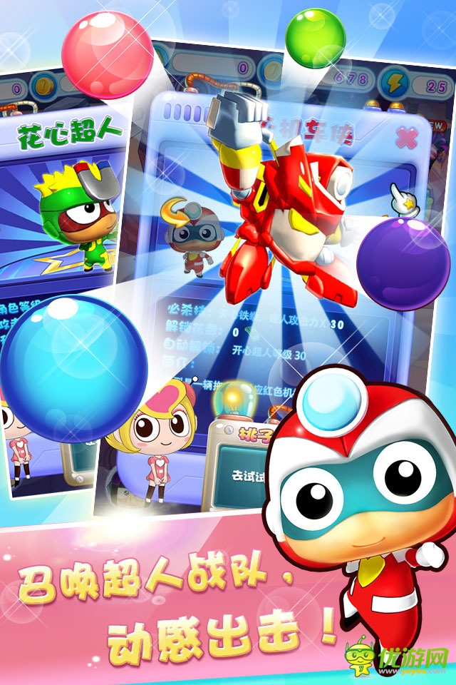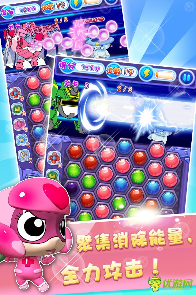 《開心愛消除》是由開心超人同名動畫電影官方授權(quán)精心打造的一款益智消除類游戲。游戲的核心玩法以消除過關(guān)為主,但同時也引入了電影中的人物角色,增強了代入感。玩家將在游戲的過程中逐漸解鎖電影里的角色,并且運用他們的炫酷能力來打敗敵人。