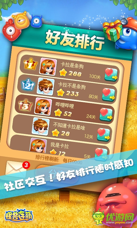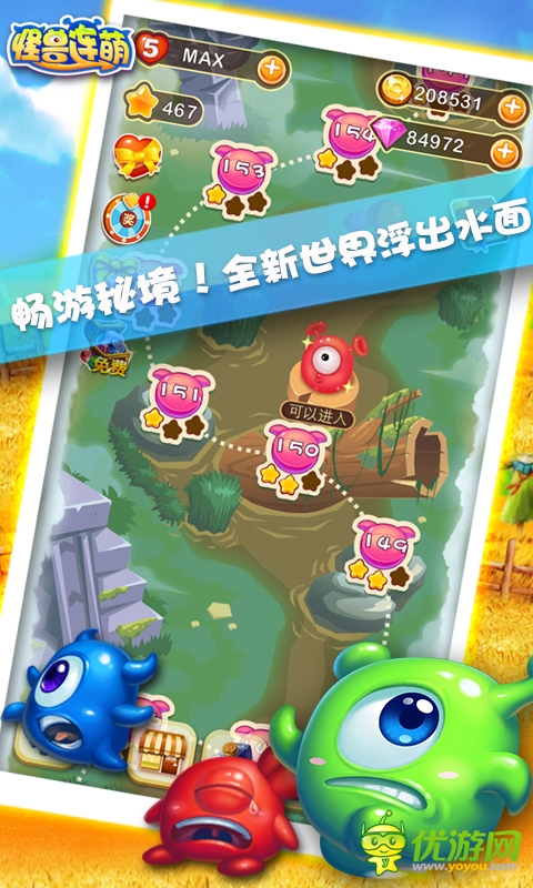 只需要用手指連線3個(gè)以上相同顏色的小怪獸就可以進(jìn)行消除,連線越長攻擊就越強(qiáng)!想證明自己的實(shí)力?那就去挑戰(zhàn)謎境或者刷滿3顆星吧!