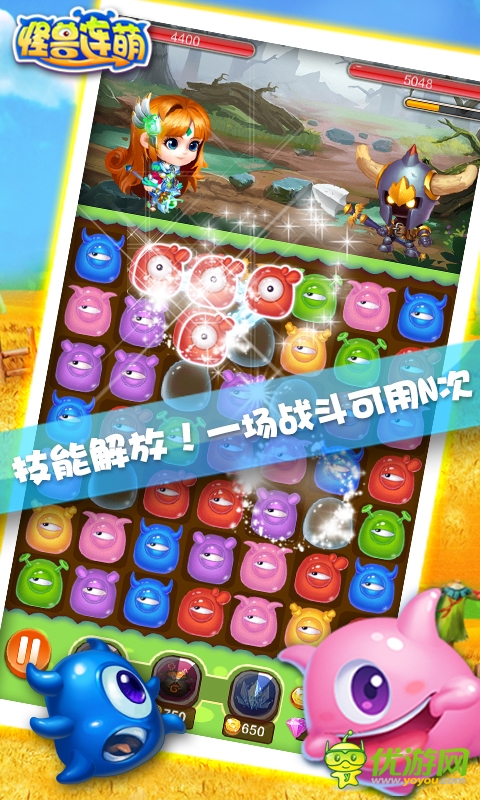 《怪獸連萌》是由網(wǎng)易門戶自主研發(fā),集消除與角色扮演于一體的休閑手游。游戲采用了獨(dú)特的連線消除方式,連線越長,消除得分越高,不聯(lián)網(wǎng)也能玩哦!不同于一般的消除游戲,角色扮演也是游戲中的重要一環(huán),又Q又萌的角色和小怪獸打成一片,絢麗夢幻的戰(zhàn)斗效果,搭配讓你萌翻天的音效,根本停不下來!