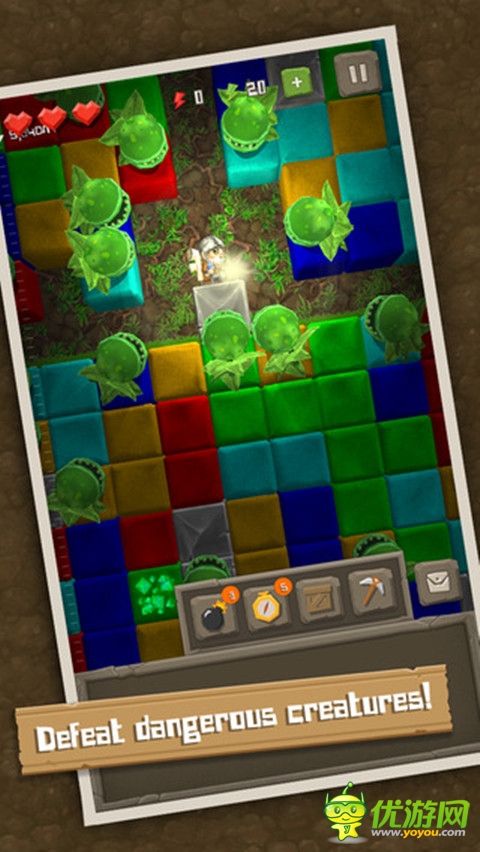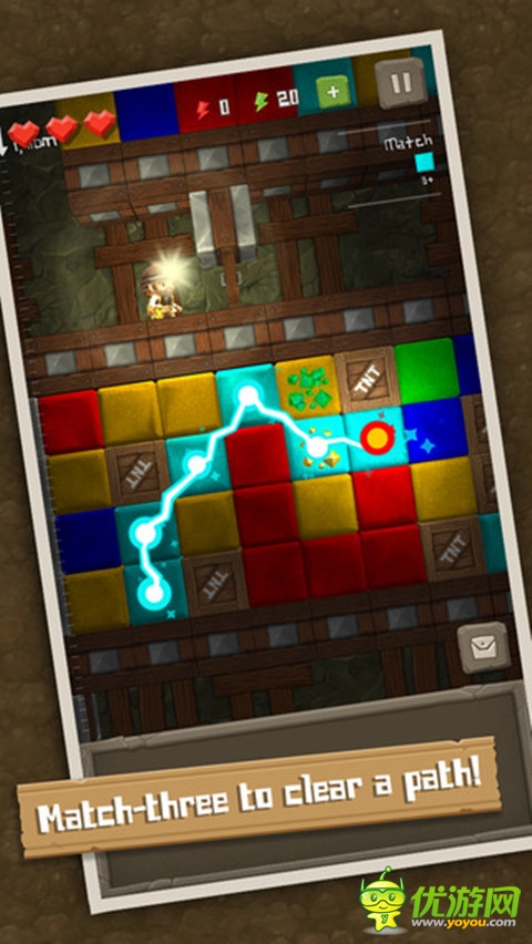 《地心冒險 Puzzle to the Center of the Earth》一款全新橫版過關(guān)游戲并融入了三消解謎玩法,超過80個的級別,還提供了一種 formulas 技巧,讓玩家一次性消除6個或以上的石塊,闖關(guān)克服困難尋找傳說中的寶藏和巨大的地下世界。