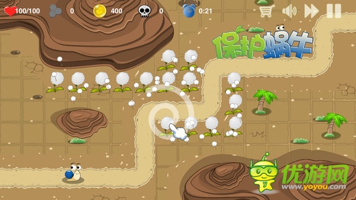 通過打怪獲得的金幣購買種子存放于背包中,不同于傳統(tǒng)意義上的塔防,可以直接使用背包中的種子快速建立起自己的防衛(wèi)領(lǐng)域,保護(hù)蝸牛順利到達(dá)目的地。怪物一波比一波強(qiáng),到特定的波數(shù)怪物會使用不同的技能抵御植物的攻擊。