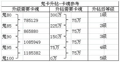 以上就是鬼卡升鉆卡魂消耗參考了,祝各位玩家游戲愉快喲!
