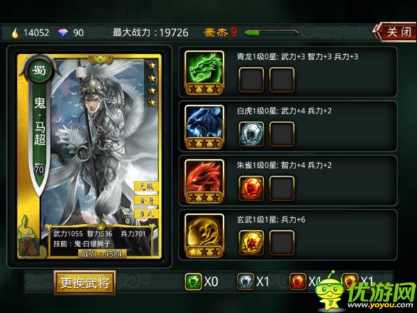 四圣石的類(lèi)別分別是:青龍、白虎、朱雀、玄武。其中青銅提供十分平均的三項(xiàng)屬性加成;白虎注重武力,并帶有兵力提升;朱雀注重智力,同時(shí)帶有兵力的提高;玄武增加最高的兵力。