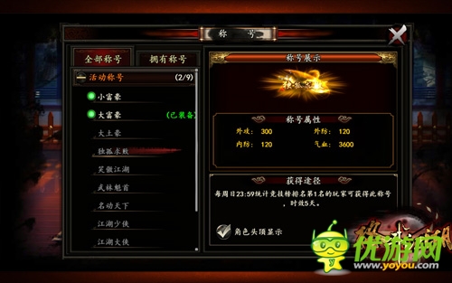 如今在江湖上混,如果你不知道二龍湖浩哥,那你可就OUT了!而在《格斗江湖》里面混,沒有個(gè)響當(dāng)當(dāng)?shù)姆Q號那也難以稱霸江湖。自從稱號系統(tǒng)開放,《格斗江湖》的玩家們就沒有停止過對新稱號的追逐,如今各種金光閃閃的稱號閃亮在玩家的頭頂上,讓小編不禁感慨:像我種沒有稱號的人,還怎么出門跟人打招呼?如果你和小編一樣想要一個(gè)霸氣的稱號,那就看看稱號系統(tǒng)到底怎么回事吧!