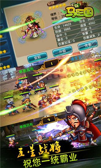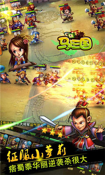 《馬上三國(guó)》具有非同尋常的裝備養(yǎng)成系統(tǒng)和官職系統(tǒng),以及異?;鸨钠ヅ鋺?zhàn)、陣法、將星圖、日常、煉制、進(jìn)階、神符,都將助玩家打造屬于自己的NB武將。并且百余名將搞笑詼諧的戰(zhàn)斗形象,大招必殺時(shí)面部特寫(xiě),讓你在調(diào)兵遣將之余享受戰(zhàn)斗帶來(lái)的喜感!
