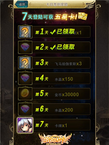 《泡泡女神》越獄公測,每日簽到送水晶!登入即送300水晶(可召喚一次,有幾率抽中5星卡牌),連續(xù)簽到能獲得1050水晶,滿7天將獲得隨機五星卡牌一張,每張五星卡牌都相當(dāng)于3000水晶的價值哦!