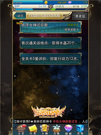 另外,努力通關(guān)地圖升級每升5級就能領(lǐng)到相應(yīng)的獎勵,能讓你變土豪的總共5400顆水晶(可連抽18次五星卡牌哦!)當(dāng)你的賬號等級超過70級將獲得一張隨機的五星卡牌。