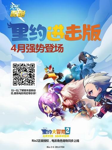 動畫電影《里約大冒險(xiǎn)2》4月11日即將登陸內(nèi)地銀幕,影片與騰訊旗下跑酷游戲《天天酷跑》牽手推出的新版游戲也將同步上線,男主角藍(lán)鸚鵡布魯...