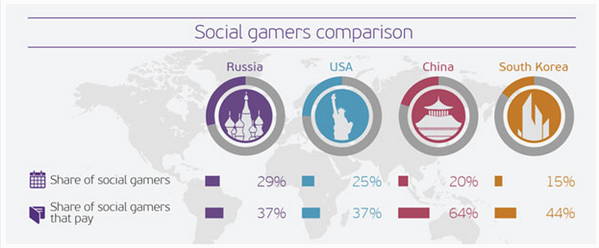 荷蘭市場(chǎng)分析公司Newzoo近期發(fā)布了俄羅斯市場(chǎng)分析公司Mail Ru的分析報(bào)告,有關(guān)俄羅斯游戲市場(chǎng)與美國(guó)、中國(guó)、韓國(guó)游戲市場(chǎng)的對(duì)照?qǐng)D。從中我