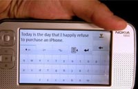 據(jù)外媒報道,一名Flickr用戶Tim Samoff在2007年6月29日,也就是iPhone一代發(fā)售當天,拍下照片證明自己繼續(xù)使用諾基亞N800手機的決心。